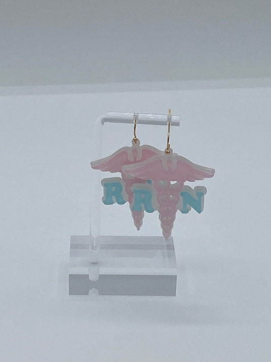 Glitter "RN" & Staff of Hermes Acrylic Earrings