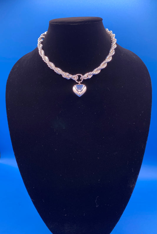 Silver Rope Chain Necklace with Heart Pendant